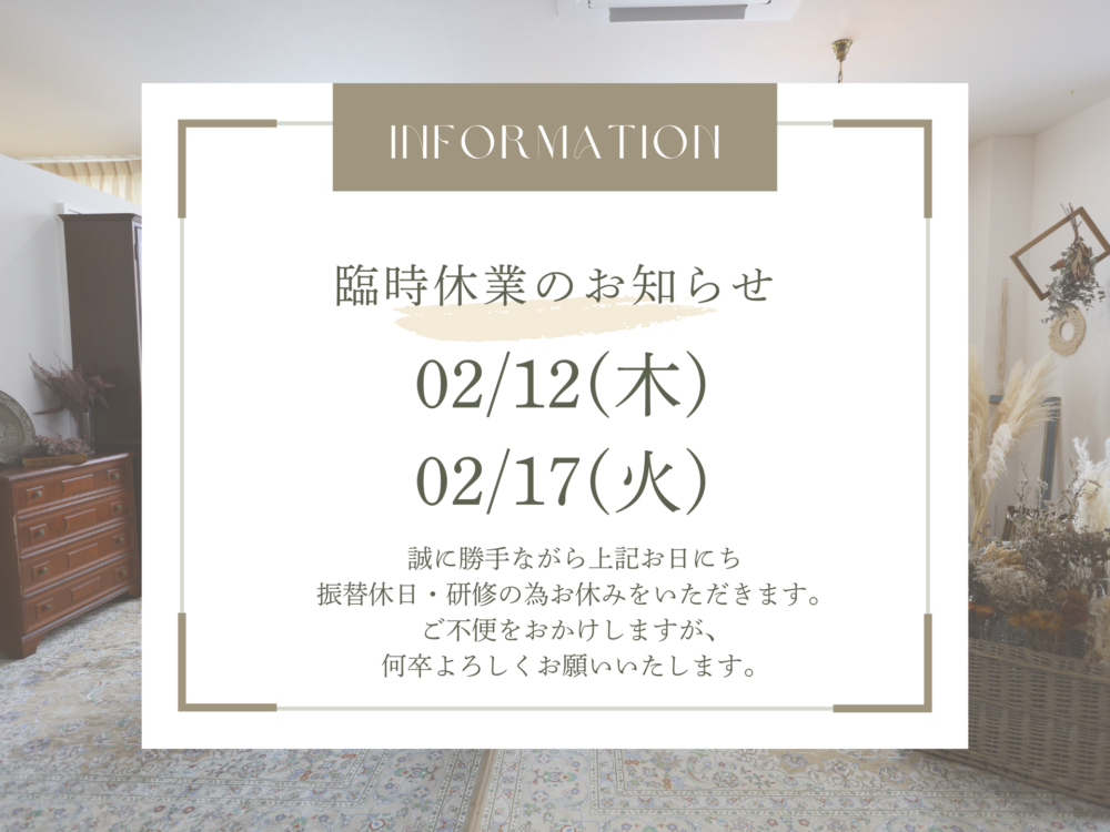 2月17日(火) :研修の為休日