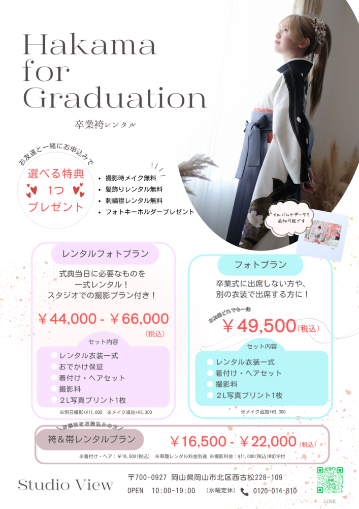 卒業式は特別な一日に。袴レンタル&撮影プランのご案内🌸 - 【公式】岡山の写真スタジオ・レンタル衣装 スタジオビュー